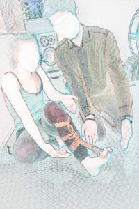 Vous pouvez apprendre au sol, et s’il n’y a pas de modèle disponible le jour de votre cours, vous pratiquerez sur vous-même et/ou vous entraînerez en permutant avec un·e autre attacheur / attacheuse